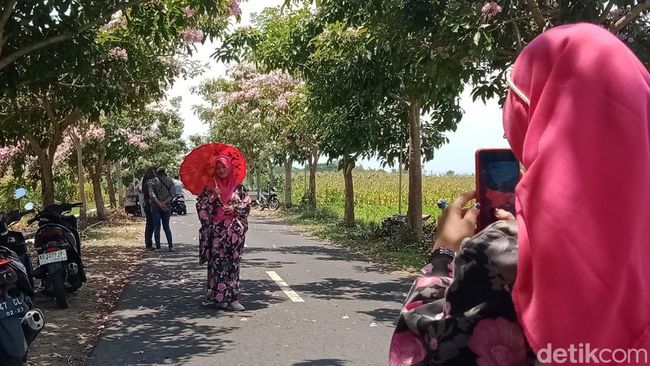Jalan Desa Soropaten, Kecamatan Karanganom, Klaten, mendadak ramai dikunjungi warga terutama untuk berswafoto. Penyebabnya, deretan bunga Tabebuya tengah bermekaran di tepi jalan tersebut.