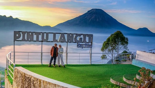 Disadur dari laman Visit Jawa Tengah yang dikelola Dinas Kepemudaan, Olahraga, dan Pariwisata Provinsi Jateng, Pintu Langit Sky View berada tepat di hadapan Gunung Sindoro. Bisa dibayangkan betapa luasnya jarak pandang mata dari situ?