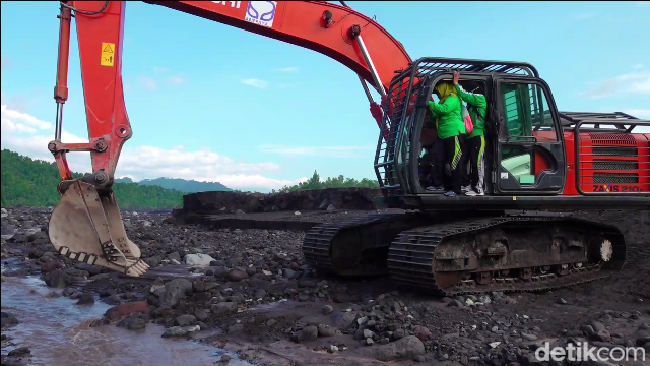 Para guru itu rela naik alat berat karena jembatan di sungai Regoyo desa Jugosari kecamatan Candipuro terputus sejak erupsi Gunung Semeru menerjang. Akibat bencana itu, puluhan murid-muridnya sudah sejak dua pekan terisolir dan tidak mendapatkan pelajaran.