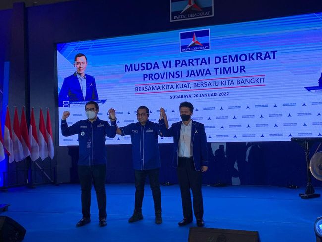 "Ada dua kader utama yang maju sebagai kandidat Ketua DPD Demokrat Jatim, pertama Mas Emil Dardak, yang kedua Mas Bayu Airlangga," kata AHY saat membuka Musda DPD Demokrat Jatim secara virtual, Kamis (20/1/2022).