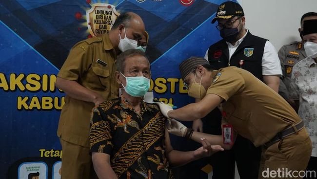 "Pemkab hari ini sudah melakukan vaksin booster. Kita utamakan untuk lansia karena lansia ini paling rentan tertular (COVID-19)," terang Mas Dhito usai melakukan kick off vaksinasi Booster di RSUD SLG.
