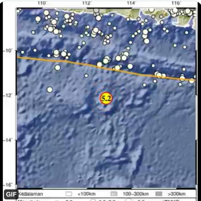 Gempa terjadi di 12.14 Lintang Selatan, 112.86 Bujur Timur atau 445 km Tenggara Kabupaten Malang. Gempa terjadi di kedalaman 10 km dan tidak berpotensi tsunami.