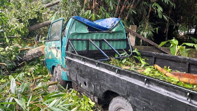 Sebuah kendaraan pikap yang diparkir di bawah pohon, juga dilaporkan rusak. Bagian depan kendaraan ringsek tertimpa bagian pohon yang tumbang. Tak ada korban terluka, namun puluhan rumah dilaporkan mengalami kerusakan.