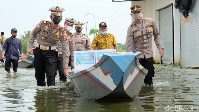 "Kami dari Satlantas Polres Lamongan dengan program Polantas Peduli menyambangi desa yang terisolir akibat banjir. Kita memberikan semangat kepada warga dan memberikan sedikit bantuan untuk meringankan beban mereka serta mengimbau untuk tetap taat protokol kesehatan," ujar Aris.