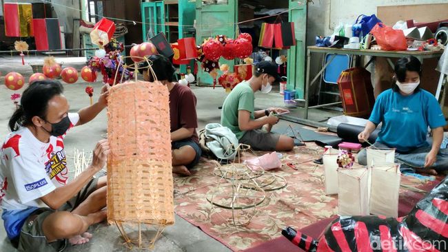 Pembuatan lampion itu dilakukan secara gotong-royong bersama warga, mahasiswa, dan seniman. Rencananya, hiasan itu akan menghiasi kampung Tambak Bayan menjelang Imlek.