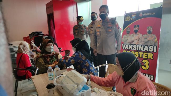 Di mal ini, polisi bahkan membuka layanan vaksinasi bagi pengunjung baik dosis kedua maupun vaksin booster terutama para lansia.