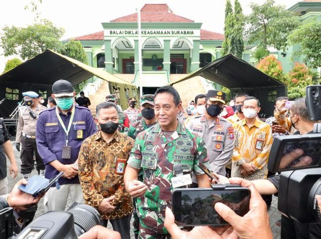 Andika ditemani Pangdam V/Brawijaya Mayjen TNI Nurchahyanto dan Kapolda Jatim Irjen Nico Afinta berkeliling dan memastikan kesiapan para relawan. Tak hanya itu, mereka memastikan fasilitas penunjang seperti klinik kesehatan karantina dan ruang tidur yang memadai.