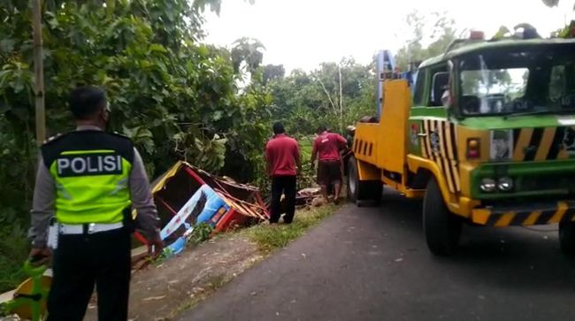 "Jadi saat jalan menikung pengemudi tidak menguasai laju kendaraan hingga terperosok ke selokan. Cuaca cerah dan kondisi jalan beraspal," kata Nanang.