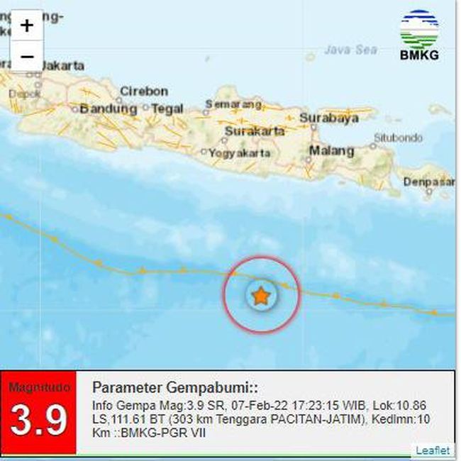 "Kedalaman 10 km," berikut keterangan resmi di akun Twitter BMKG DIY, @bmkgjogja, seperti yang disimak detikjatim, Senin (7/2/2022).