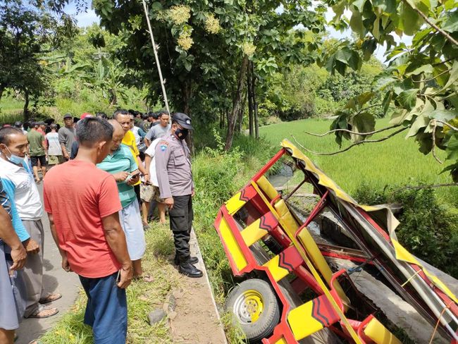 Sebelumnya, sebuah kereta kelinci muat 40 penumpang nyungsep ke sebuah selokan di jalan kampung Dusun Ngilis Desa Joho, Dagangan, Madiun.
