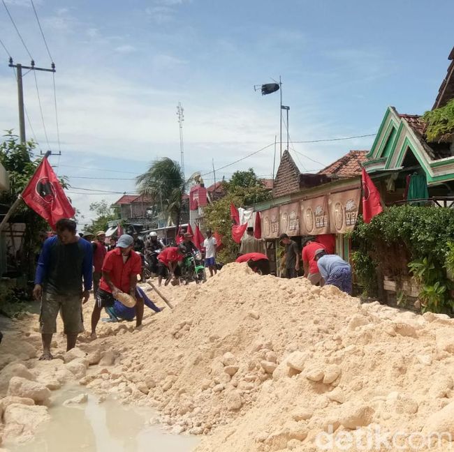 Untuk penanganan darurat ini, DPC PDIP Lamongan telah menggelontorkan batu kapur sebanyak 55 dump truk. Untuk pengurukan di jalan sepanjang 235 meter.
