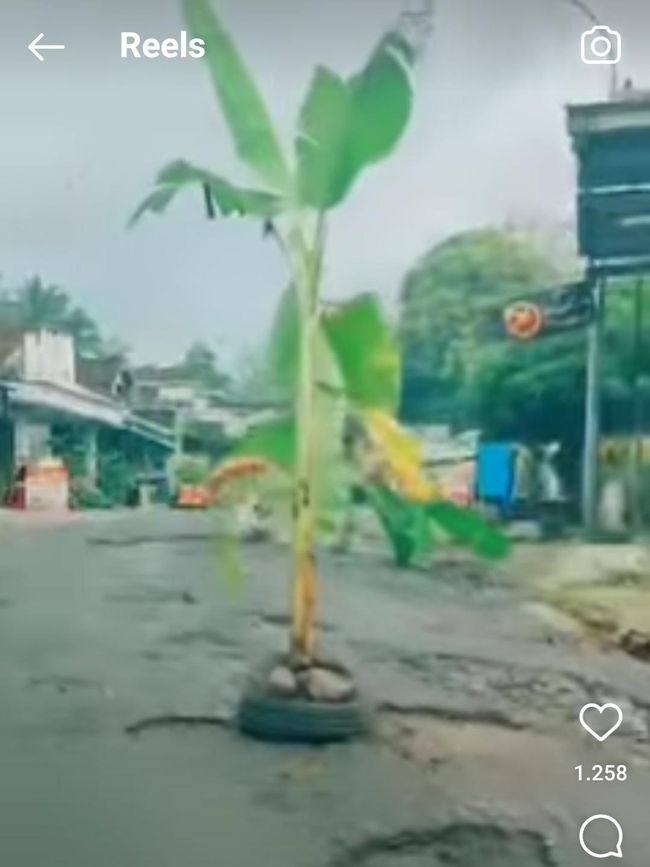 Pada unggahan itu tertulis caption 'Haruskah warga meminta tolong kepada pohon pisang untuk mewakili perasaan kecewa pada jalanan yang rusak...Pagi ini kembali jalanan tumbuh pohon pisang. TKP sekitar kuburan Ngentak, Dayu Kabupaten Blitar. Kepada siapa warga mengeluh? Cuma kepada pohon pisang mereka mengadu. Mau tag @pemkab_blitar takut dosa...ahh sudahlah'.