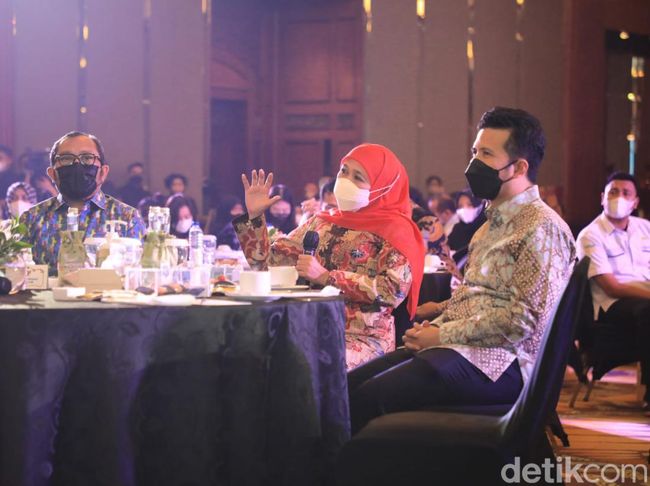Gubernur Jatim Khofifah Indar Parawansa hadir dalam launching detikjatim. Dalam interaksi detikjatim, ia menyampaikan sederet keunggulan Jatim.