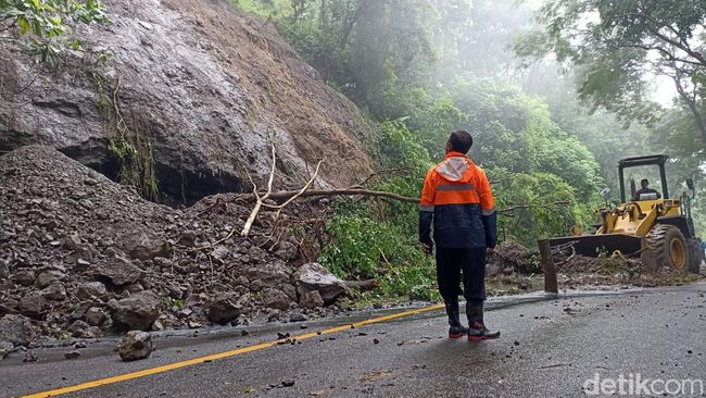 "Longsor ada lima titik, mulai KM16-18, yang paling besar di KM 16 ini," KBO Satlantas Polres Trenggalek Ipda Widarto, Senin (14/2/2022).