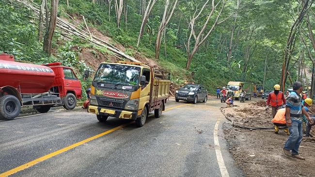 Jalur ini sempat tertimbun lima titik longsor sejak pukul 02.00 WIB dini hari. Usai sembilan jam, jalur kembali bisa dilalui kendaraan,