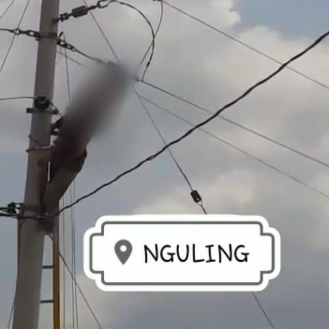 Beredar video orang tersetrum di tiang listrik. Tubuh korban yang sudah kaku kemudian terbakar.