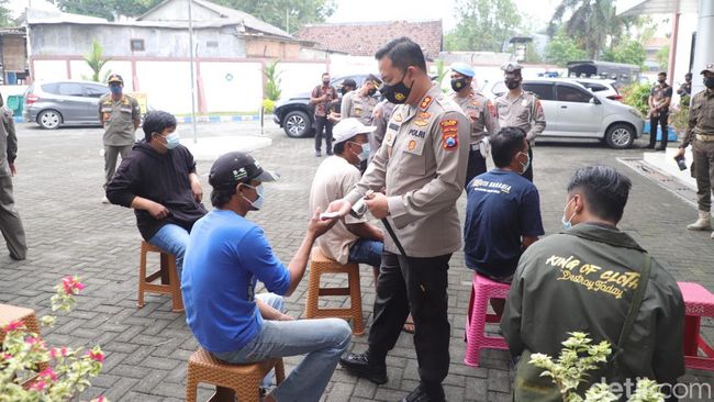 Polisi bersama Satpol PP Kabupaten Kediri melakukan operasi yustisi penegakan protokol kesehatan di Kecamatan Pare Kabupaten Kediri. Hasilnya, puluhan warga terjaring razia.