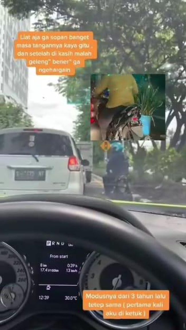 Video pengendara motor melakukan modus ketuk kaca mobil untuk meminta uang, viral di media sosial dan aplikasi perpesanan. Kejadian ini berlangsung di jalanan Kota Surabaya.