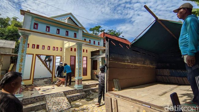 Rumah itu berada di Desa Karanglo Lor, Kecamatan Sukorejo. Pantauan detikjatim, di lokasi tampak beberapa pekerja yang mengangkut genting, kuda-kuda, daun jendela dan pintu. Itu semua diangkut menggunakan truk ke Desa Ploso Jenar, Kecamatan Kauman, tempat asal Sunarti.
