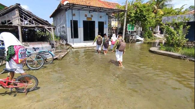 "Karena gedung sekolah terendam banjir, proses belajar mengajar kita alihkan ke musala dan masjid desa agar anak-anak tetap bisa belajar meski sedang banjir," kata Kepsek MI Raudlatul Ulum Muhammad Syamsul kepada wartawan, Kamis (17/2/2022).