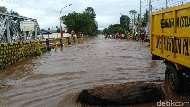 "Banjir kiriman dari hulu. Di Kota Pasuruan tidak hujan tapi air sungai tinggi," kata petugas BPBD di lokasi.