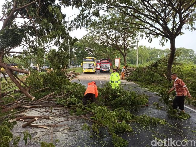 "Kejadian diawali hujan intensitas tinggi disertai angin kencang, mengakibatkan 7 pohon tumbang di akses Jalan Raya Suramadu," kata Kepala BPBD Kabupaten Bangkalan Rizal Morris saat dihubungi detikJatim, Minggu (20/2/2022).