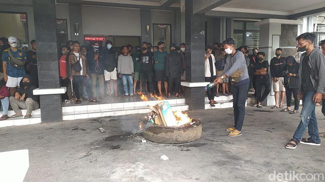 Dalam aksi itu, para mahasiswa melakukan aksi tutup mulut. Mereka juga membakar ban bekas.