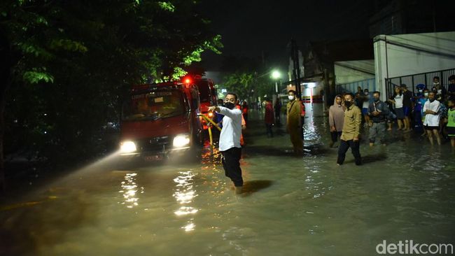 Pantauan detikjatim sekitar pukul 21.57 WIB, Eri beserta jajaran ke lokasi untuk memastikan banjir segera teratasi dan segera surut. Bahkan, Eri sempat turun ke jalan untuk mengurai kemacetan lalu lintas di kawasan Wiyung.