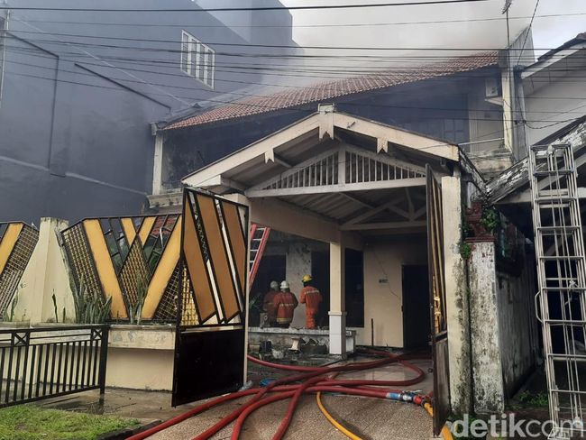 Di dalamnya ada satu orang terjebak di rumah berlantai 2 tersebut.