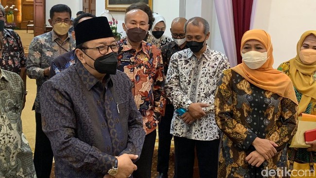 "Kami sowan kepada Bu Gubernur dalam rangka Sekolah Tinggi Kesenian Wilwatikta (STKW) Surabaya. Sesuai dengan aturan perundangan yang baru, itu yang sudah dimiliki Pemda Provinsi sekarang tidak boleh, itu pengaturannya semua dari pusat. Maka perizinan dan lainnya, penentuan syarat semua dari pusat. Tapi provinsi masih bisa mengelola," kata Pakde Karwo di Gedung Negara Grahadi, Jumat (25/2/2022).