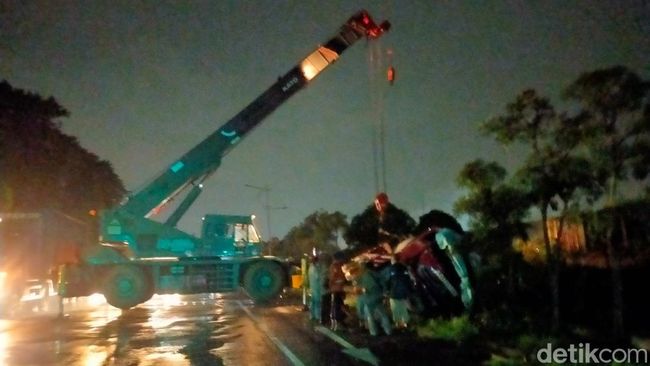 Saat ini, satu mobil crane berada di lokasi dan masih berupaya melakukan evakuasi. Akibat kejadian ini, kendaraan yang keluar dari Tol Dupak hanya bisa menggunakan satu lajur jalan.