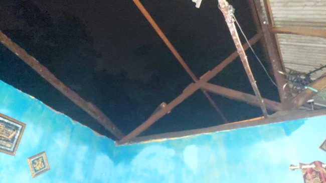Atap rumah Suyati lenyap sebagian mulai ruang tamu sampai ruangan belakang. Rusaknya atap berbahan asbes mengakibatkan hujan gerimis langsung membasahi seluruh perabotan rumah.