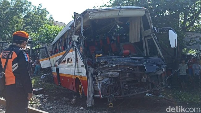 "3 Bus. Bus 1 lolos, bus 2 lewat, bagian ekor dari bus Harapan Jaya tersebut tertabrak kereta api," tambah Handono.