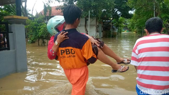 Pantauan detikJatim, awalnya banjir hanya menggenangi Kelurahan Gladak Anyar. Hingga pukul 10.30 WIB, banjir telah meluas di Desa Jalmak Kelurahan patemon.