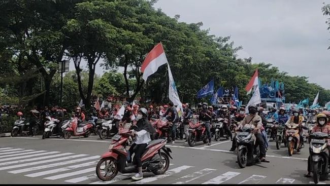 Serikat buruh yang tergabung dalam aliansi besar Gerakan Serikat Pekerja (GASPER) kembali menggelar demo hari ini, Selasa (1/3/2022). Massa mulai berdatangan dan memadati sekitar Bundaran Waru masuk Surabaya.