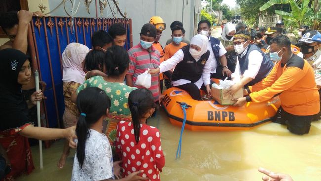 Gubernur Jawa Timur Khofifah Indar Parawansa meninjau bencana banjir yang merendam wilayah Pamekasan, Madura. Khofifah menegaskan Pemprov Jatim bersama Pemkab Pamekasan mengerahkan semua sumber daya untuk memastikan Banjir Pamekasan bisa segera surut.