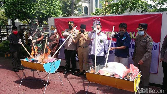 Kejari Trenggalek memusnahkan ratusan barang bukti tindak pidana yang sudah memiliki kekuatan hukum tetap. Pemusnahan dilakukan dengan cara dibakar hingga dilarutkan air.