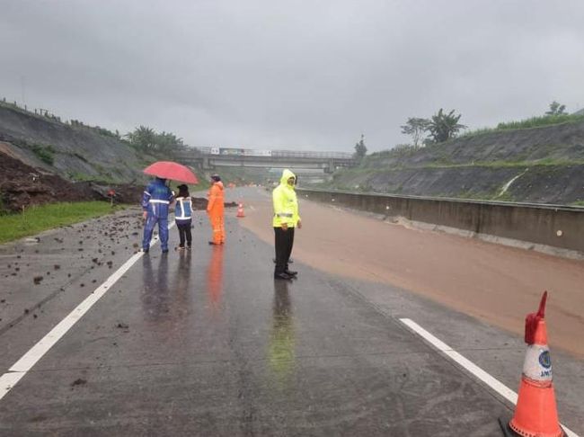Menurut Rahmad, akibat peristiwa longsor ini, air juga membanjiri jalur tol sepanjang 400 meter.