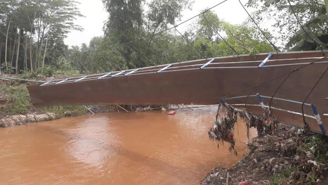 Jembatan yang diresmikan pada 2017 itu biasanya dilewati pejalan kaki dan pemotor. Kini, jembatan yang menjadi urat nadi 2 desa itu tidak berfungsi akibat rusak parah.