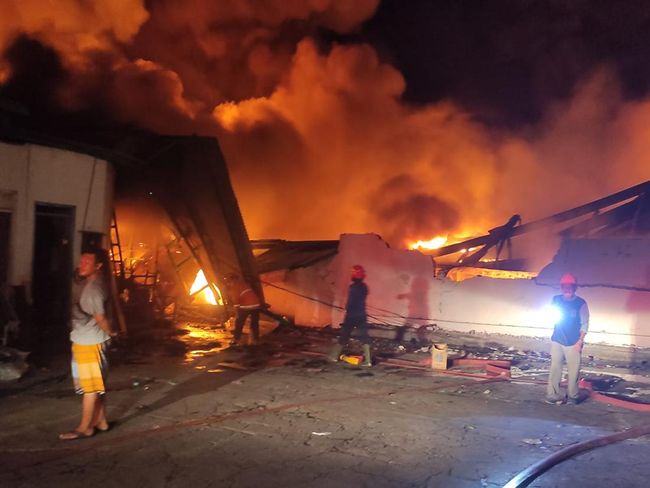Pabrik sepatu CV Sweet Seventeen di Wadungasri Sidoarjo, terbakar. Kebakaran terjadi sekitar pukul 16.45 WIB, Rabu (9/3/2022). Para karyawan mengaku panik dan berhamburan keluar menyelamatkan diri.