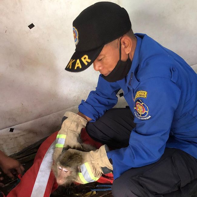 Oleh sebab itu, evakuasi baru selesai pukul 11.50 WIB. Itu setelah tim PMK menyiram monyet dengan air agar tenang. Selanjutnya, petugas melemparkan baju pemadam yang tebal ke monyet, lalu menangkapnya.