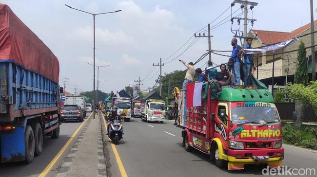 Ratusan sopir truk yang hendak menggelar aksi demonstasi soal over dimension and over loading (ODOL) melakukan konvoi di Sidoarjo. Mereka sengaja melajukan truknya dengan pelan hingga menyebabkan kemacetan hingga 1 kilometer.