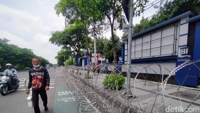 Pantauan detikJatim di Kantor Dishub Jatim sudah bersiaga dua unit kendaraan pemadam kebakaran. Selain itu, sudah bersiaga unit Jatanras Polrestabes Surabaya di lokasi, sebagian sepeda motor mereka sudah terparkir di sisi selatan kawat berduri.