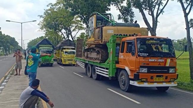Sebelumnya ratusan truk dan kendaraan logistik tampak memarkir kendaraan di pinggir Jalan By Pass Nganjuk pada Rabu (8/3/2022). Mereka melakukan sweeping ke truk yang melintas di Nganjuk dan membagikan selebaran sambil meminta agar semua sopir berhenti.