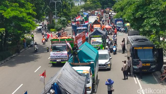 Berikut rangkaian foto sopir truk demo tolak aturan ODOL di Dishub Jatim: