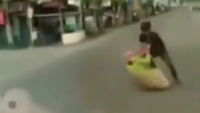 Video berdurasi 10 detik itu diambil dari dalam mobil. Video itu memperlihatkan seorang waria berkebaya hijau memukul seorang pria berkaus hitam .