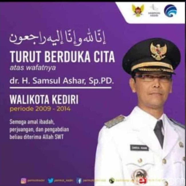 Mantan Wali Kota Kediri periode 2009-2014 dr H. Samsul Ashar SpPD tutup usia. Almarhum meninggal Minggu (13/3/2022) pukul 03.30 WIB di salah satu rumah sakit Surabaya di usia 60 tahun.
