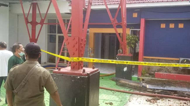 Karena masih ada proses pembasahan ini, listrik yang mengaliri gedung untuk sementara dipadamkan. Proses ini diperkirakan akan terjadi hingga 17.00 WIB.