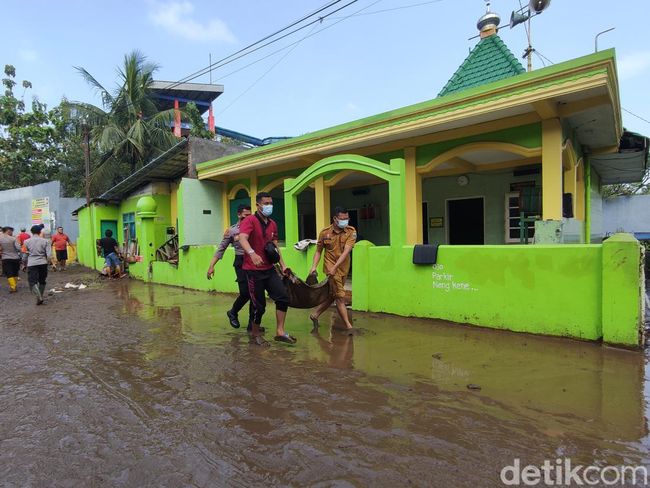 Dari pantuan detikJatim, para personel gabungan terlihat menyemprotkan air untuk membersihkan material lumpur yang menutup permukaan badan jalan. Pembersihan itu juga menjangkau sebuah musala dan rumah warga yang terdampak banjir.