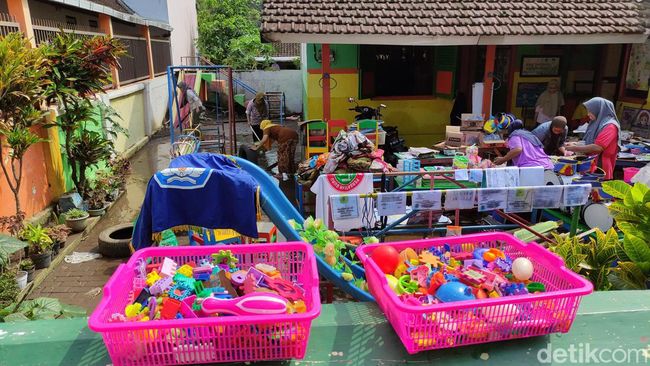 Selain fasilitas umum, warga secara gotong royong membersihkan sisa banjir yang sempat merendam sebuah lembaga pendidikan taman kanak-kanak. Seluruh infrastruktur untuk sekolah terendam air dan lumpur hingga warga harus mengeringkan dengan menjemur barang-barang tersebut.